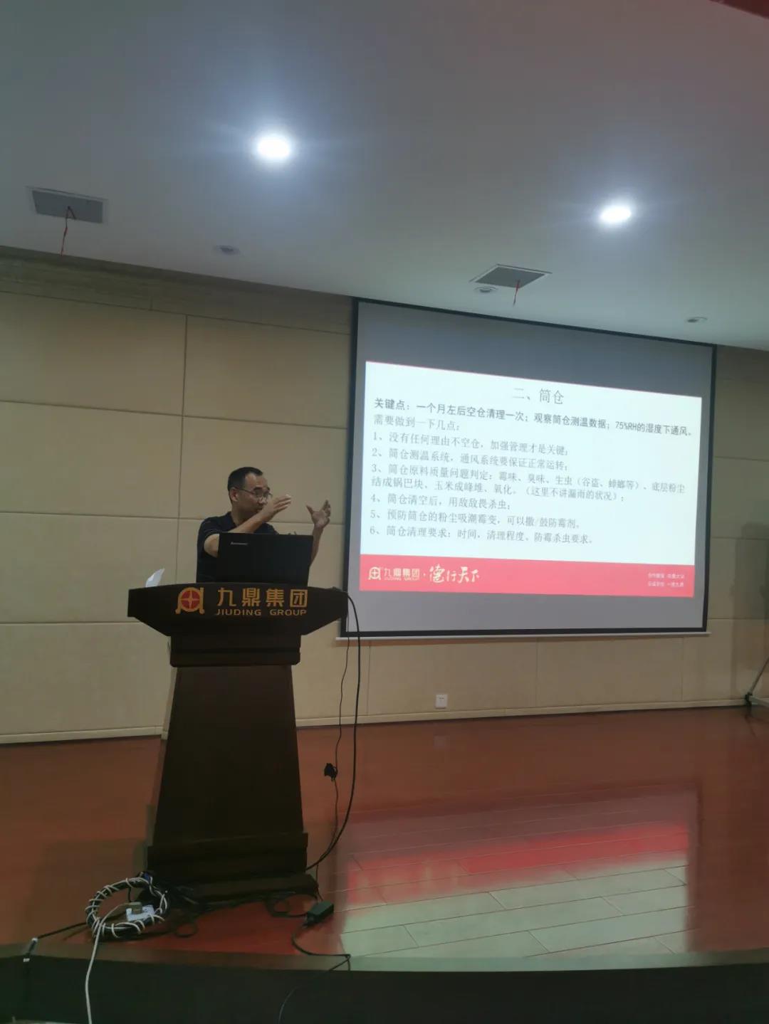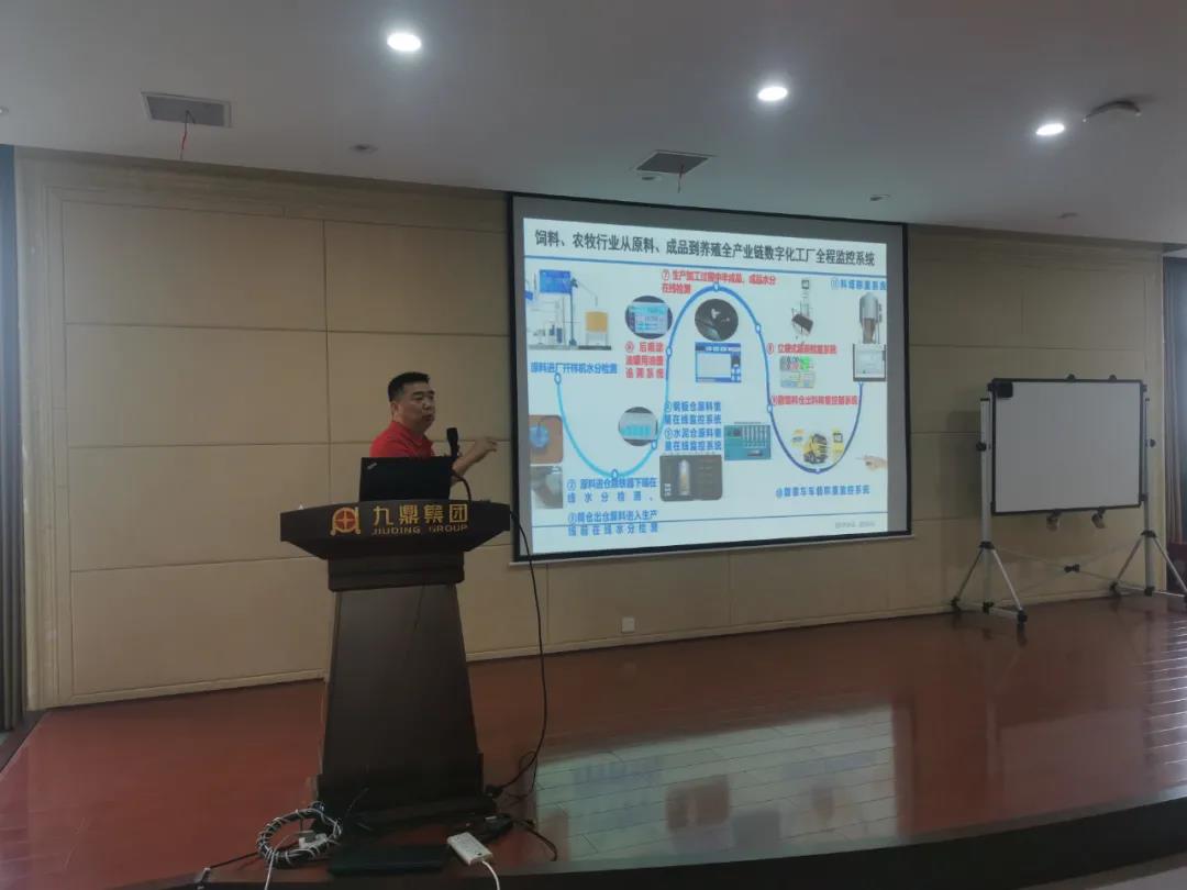 湖南九鼎農(nóng)牧基地廠長謝爭光在會場進行新工藝/新技術/新設備分享與答疑