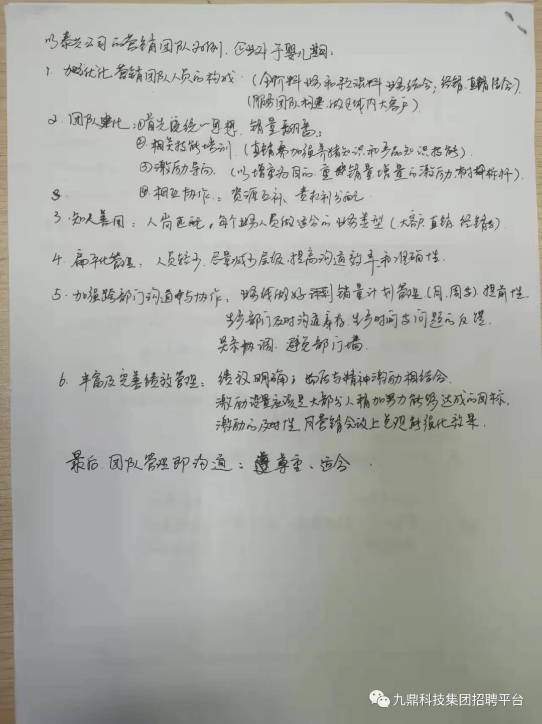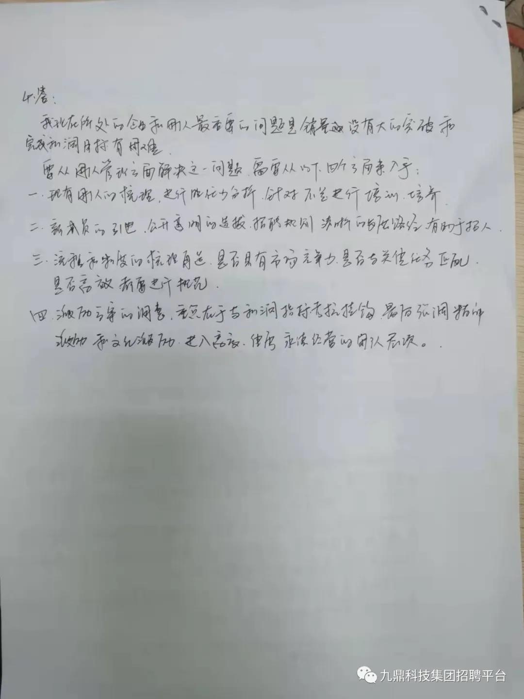 四天的培訓時間是短暫的,留給大家更多的是思考如何立足本職工作,做好2022年的工作計劃,在今后的工作中比學趕超,做出成績。 另外,九鼎集團中高管招聘工作還在繼續進行中,如果您有興趣歡迎自薦或者推薦身邊的優秀人員給我們。聯系方式可以投遞簡歷至文末招聘郵箱,或直接在本公眾號回復消息即可~~