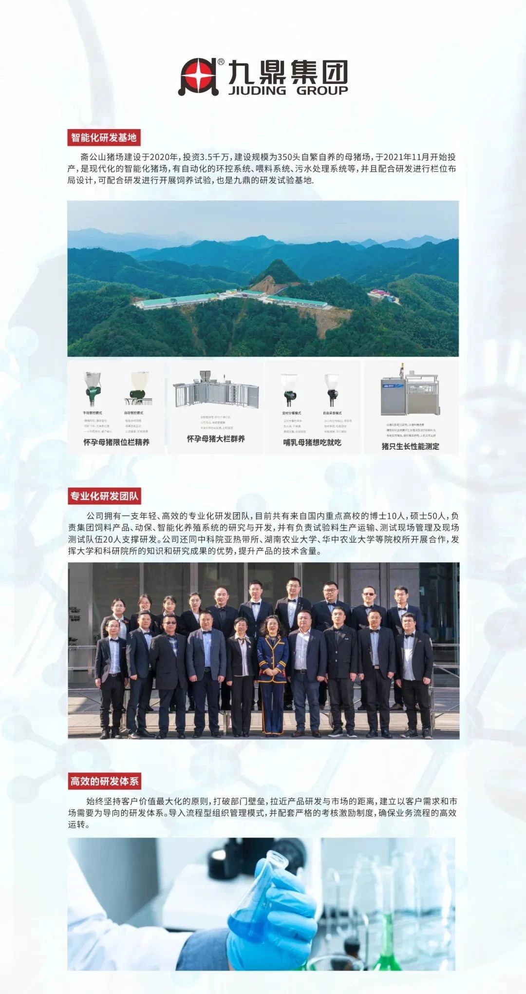 九鼎集團29年來專業(yè)研發(fā)生產(chǎn)豬料,在產(chǎn)品創(chuàng)新和實踐上一直走在行業(yè)前列,未來九鼎也將繼續(xù)以客戶為中心,為廣大養(yǎng)殖企業(yè)提供優(yōu)質的飼料產(chǎn)品及服務,助力生豬養(yǎng)殖業(yè)走向高質高效的發(fā)展道路!