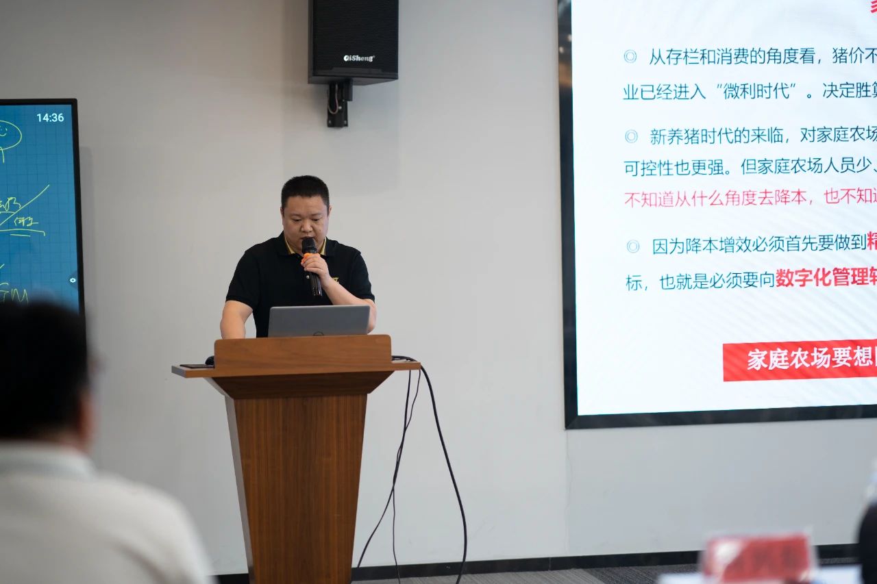 ▲潤農(nóng)科技總經(jīng)理劉南林分享了數(shù)字化服務(wù)促進(jìn)養(yǎng)殖精益管理案例