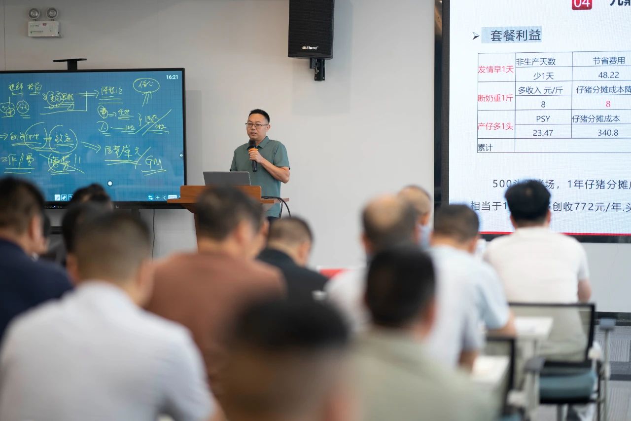 ▲特約嘉賓大北農(nóng)集團(tuán)養(yǎng)豬技術(shù)服務(wù)公司李淼老師分享了豬場服務(wù)團(tuán)隊(duì)成功經(jīng)驗(yàn)