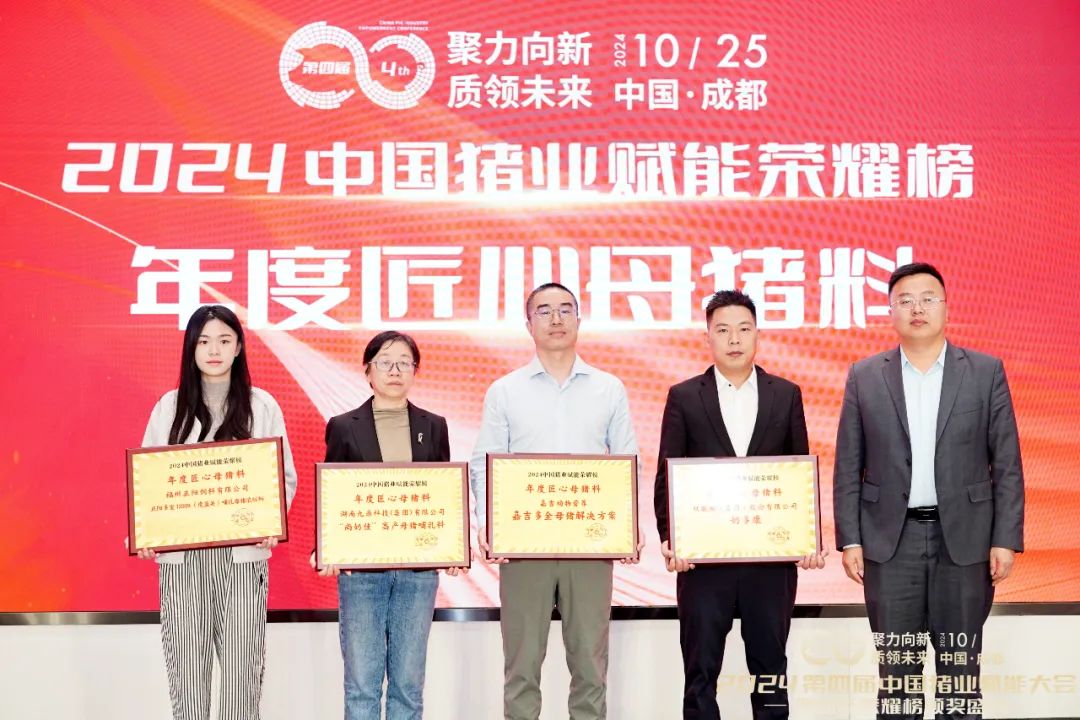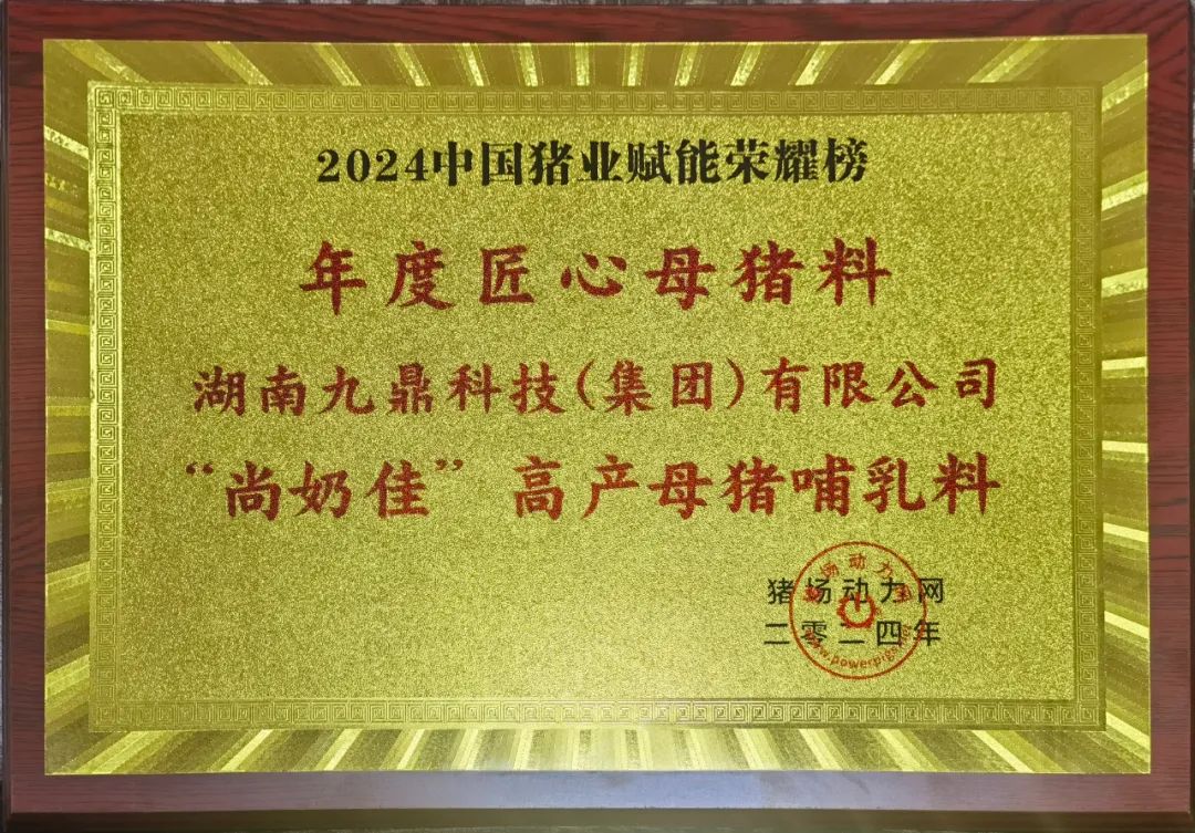 在與李曼大會同期舉行的2024中國豬業(yè)賦能大會頒獎典禮上,九鼎哺乳母豬料榮獲2024年度匠心母豬料產(chǎn)品獎。