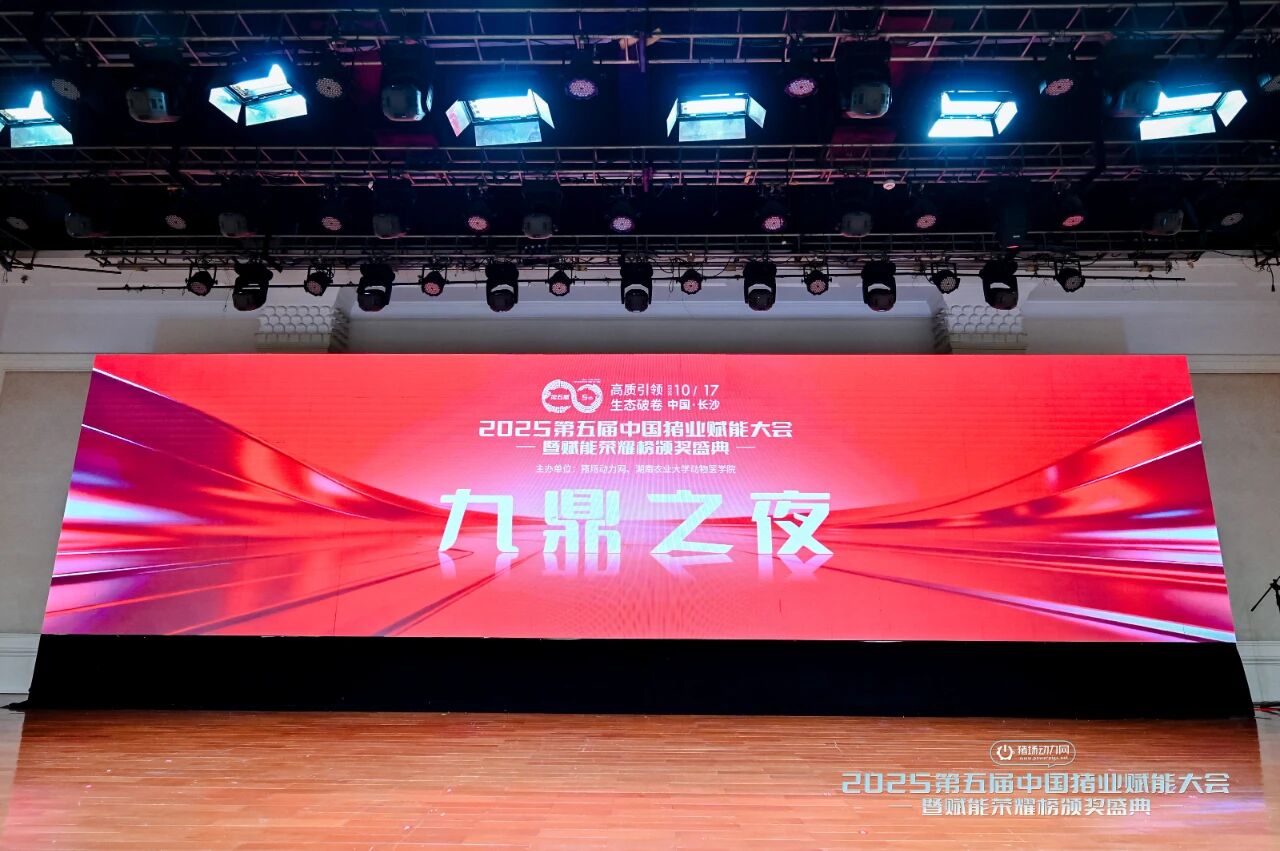 晚間,九鼎集團特約舉辦了“2025第五屆中國豬業(yè)賦能大會暨賦能榮耀榜頒獎盛典--九鼎之夜”,在明城國際大酒店表彰為行業(yè)做出卓越貢獻的企業(yè)和個人,九鼎集團超吉大000榮獲“2025年度匠心教槽料”、尚奶佳榮獲“2025年度匠心母豬料”。
