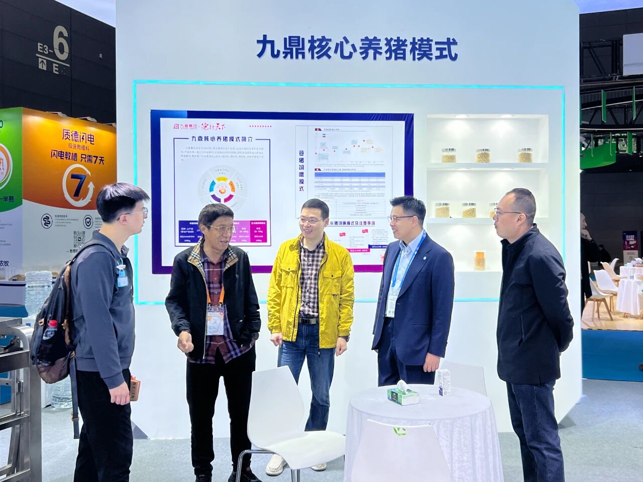 在九鼎集團(tuán)展區(qū)內(nèi),“智鏈三驅(qū)”智能化養(yǎng)豬解決方案的亮相吸引了大量專業(yè)觀眾駐足交流。