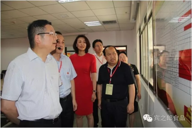 蔡建和一行先后參觀了賓之郎榮譽室、賓之郎自動化工藝制作車間、賓之郎食品安全風險防控室、賓之郎企業(yè)文化宣傳長廊和賓之郎黨群服務中心(黨群工作部、黨員會議室、黨群文娛室、黨群活動中心、心靈驛站等場所),詳細了解了賓之郎黨員組織管理情況、黨群活動開展情況及“兩學一做”專題培訓教育和企業(yè)經濟發(fā)展情況。