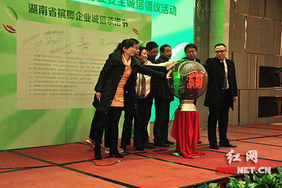 紅網(wǎng)長沙2月6日訊(記者 陳馨怡)今日上午10點30分,紅網(wǎng)與湖南省檳榔行業(yè)協(xié)會攜手共建的檳榔食品行業(yè)全國唯一對外宣傳平臺—“檳榔頻道”在長沙融程花園酒店正式舉行了上線儀式,與此同時,皇爺、口味王、胖哥等省內(nèi)檳榔龍頭企業(yè)代表檳榔食品行業(yè)簽署“檳榔食品安全誠信倡議書”,倡導食品安全誠信經(jīng)營的環(huán)境。