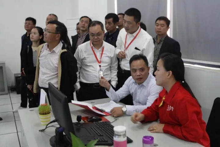 湘潭市食安委辦公室主任、市食品藥品監(jiān)督管理局局長莫秋華及參會人員參觀賓之郎食品安全生產風險防控室