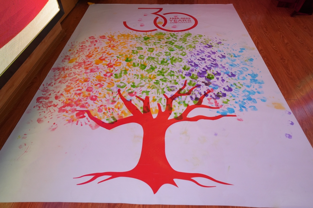 "掌印同心"環(huán)節(jié)成為全場(chǎng)溫情的焦點(diǎn)。大小手印共同繪制企業(yè)三十年華章,200余個(gè)彩色手印匯聚成企業(yè)發(fā)展的美好愿景。每個(gè)家庭的獨(dú)特印記都留在了企業(yè)發(fā)展的畫卷上,這不僅是一次創(chuàng)作,更是一次家企關(guān)系的深度鏈接。